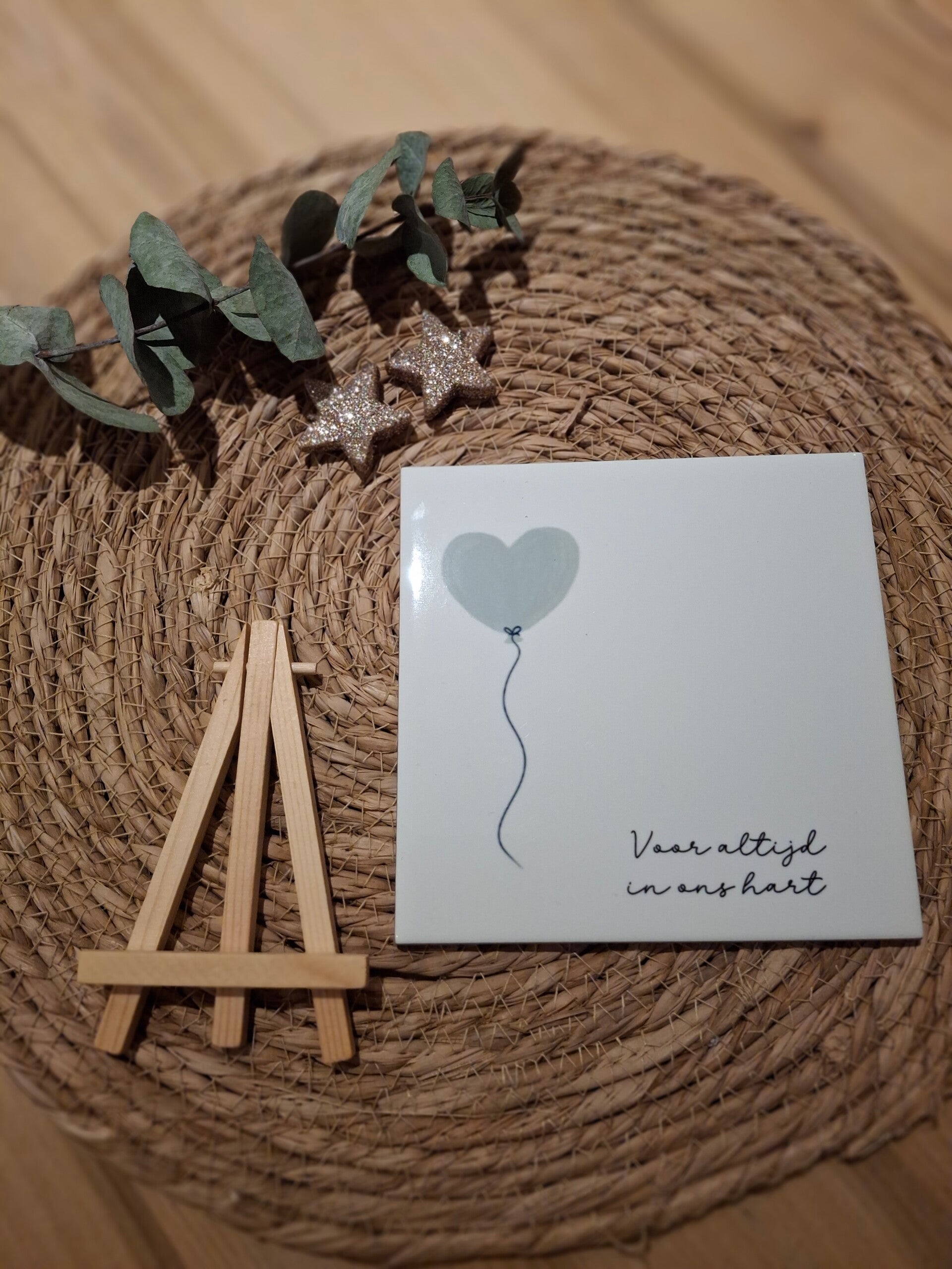 Het glanzende keramiek tegeltje met het zachte hartje en de tekst “Voor altijd in ons hart” staat symbool voor liefde die nooit verdwijnt. Een tastbare herinnering die je een mooi plekje kunt geven in huis of kado kunt geven, als steun in moeilijke momenten of als stille gedachte aan wie wordt gemist.