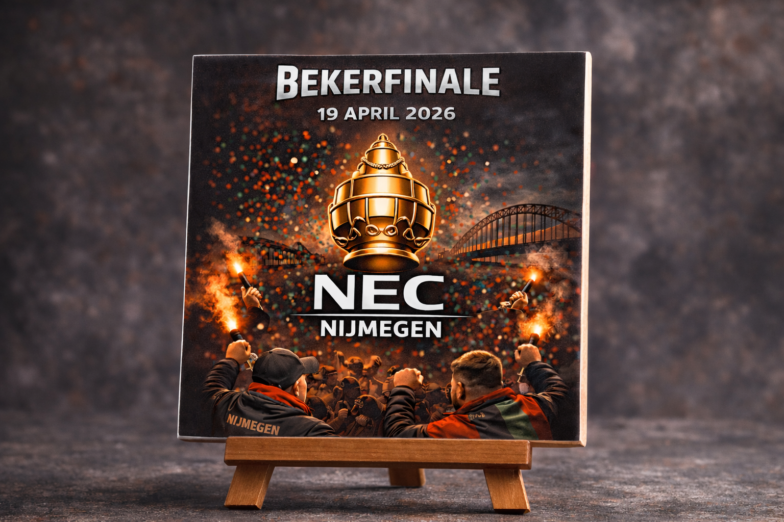 Deze tegel staat symbool voor een bijzonder moment in de geschiedenis van N E C Nijmegen. De bekerfinale van 19 april 2026 is niet zomaar een wedstrijd, maar een dag waarop een hele stad samenkomt.