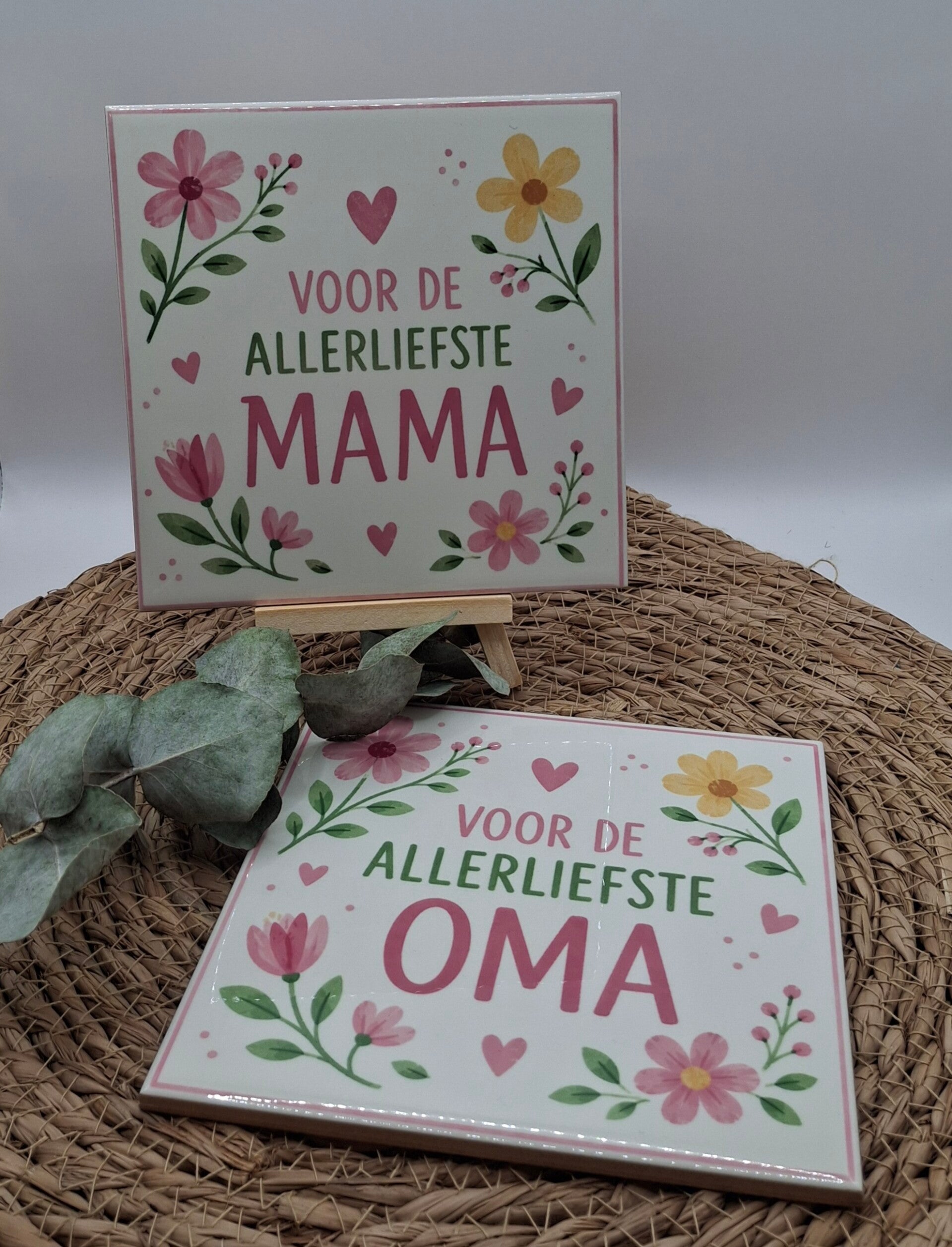 Op zoek naar een persoonlijk en liefdevol cadeau? Deze prachtige decoratieve tegels zijn speciaal ontworpen om mama of oma in het zonnetje te zetten. Met een zachte bloemenprint en lieve tekst zijn ze een echte blikvanger in elk interieur.